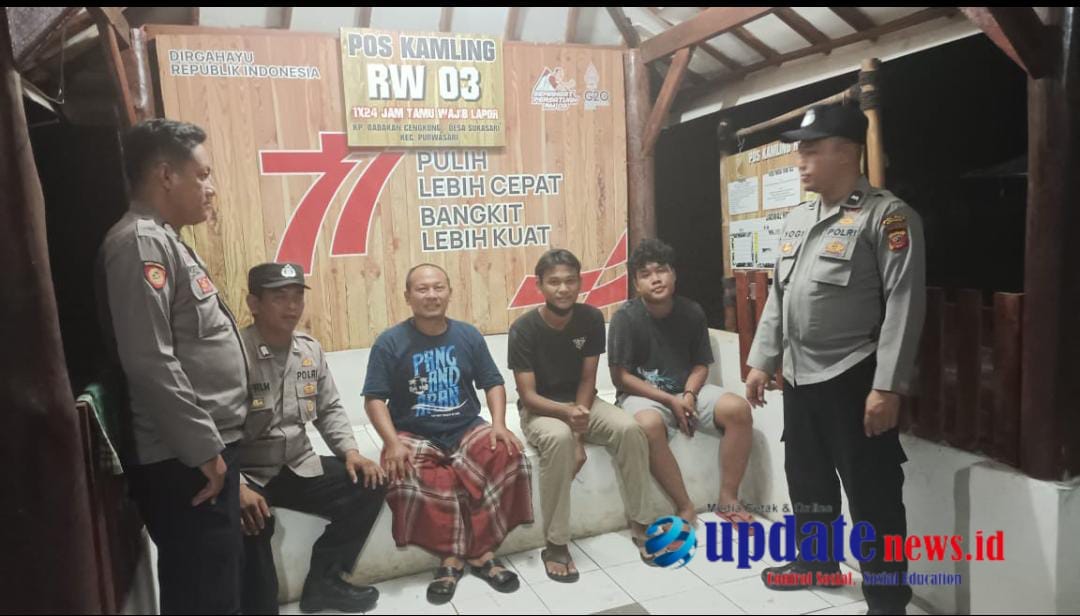Karawang,updatenews.id – Jajaran Polsek Purwasari Polres Karawang Polda Jabar melakukan kontrol sekaligus ngawangkong bersama warga yang sedang asyik ronda di Dusun babakan dukuh Desa Sukasari Kecamatan Purwasari Karawang, Minggu (16/7/23)