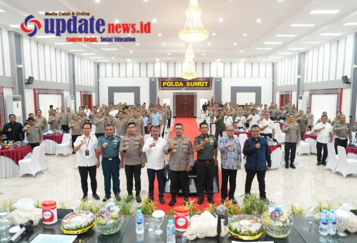 Medan,updatenews.id | Kapolda Sumut Irjen Pol Wisnu Hermawan memimpin Rapat Koordinasi (Rakor) Lintas Sektoral terkait Operasi Mantap Praja Toba 2024 di Aula Tribrata Polda Sumut. Acara dihadiri oleh unsur terkait seperti Pj Gubernur Sumut yang diwakili oleh Asisten Pemerintahan, Panglima Kodam I/BB yang diwakili oleh Kasdam I/BB, Kepala Kejaksaan Tinggi Sumut, Kapengti, Danlatamal, Ketua KPU dan Ketua Bawaslu Prop. Sumut serta perwakilan pejabat utama Sumut lainnya.